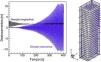 Na figura 9 são apresentados os resultados referentes ao Procedimento 2, onde têm‐se diferentes raízes médias quadráticas das amplitudes para deslocamentos verticais e angulares obtidas conforme os valores de velocidade de vento estudadas. Estes valores das raízes médias quadráticas foram extraídos dos históricos dos deslocamentos vertical e angular fornecidos pelas análises, considerando‐se longos períodos de tempo. O cálculo destes valores é computado quando o fluxo é completamente desenvolvido e a estrutura estabiliza suas oscilações. Como pode ser visto, entre 50 a 60m/s há um aumento significativo tanto nos deslocamentos angulares como também nos deslocamentos verticais. Pode‐se concluir com isso que há efetivamente o acoplamento destes modos de vibração, onde as 2 direções passam a apresentar deslocamentos elevados simultaneamente.