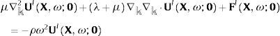 donde μR y λR son las constantes de Lamé y ζ el coeficiente de amortiguamiento histerético.Para resolver la ecuación (5), el vector de desplazamientos UlX,ω;0 se descompone en la suma de potenciales escalar y vectorial [27]: