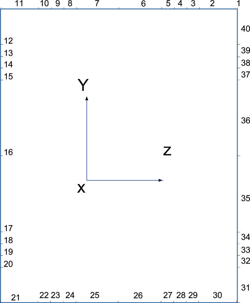 El modelo tridimensional se define a partir de una sección en el espacio con 40puntos, perpendicular a la directriz en el origen de esta, tal y como se define en la figura 13.