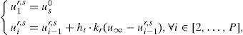 En lo que sigue, y sin pérdida de generalidad, se supone que los intervalos [t˜;i,t˜;i+1] tienen la misma longitud, esto es, t˜;i+1−t˜;i=Δ, i=1, …, D−1. El parámetro desconocido k toma valores en el intervalo [kmin, kmax] con kmin>0 y kmax>kmin. La solución más general que permite un conocimiento completo de u(t) bajo todas las circunstancias posibles consiste en la resolución, una única vez, y realizada off-line, como se probará después, de la ecuación: