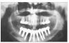 Figura 2 Ortopantomograma realizado en 1994 que muestra el tratamiento de la paciente con una PDF implantosoportada en el maxilar inferior y la retención de los dientes en el maxilar superior.