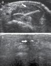 Cuerpos extrañosPosibles de ver en cualquier región anatómica y a pesar de tener distintos orígenes (vegetal, metálico, vidrio, etc.), la apariencia ecográfica en general es no específica, siendo lo más frecuente visualizarlos como una estructura ecogénica (figura 15). La evaluación puede ser dificultada en presencia de burbujas de aire en la herida de tejidos blandos, ya que el aspecto de estas últimas puede ser similar a cuerpos extraños irregulares de pequeño tamaño (31).