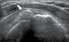 En el tendón de la porción larga del biceps es útil para estudio de tenosinovitis o luxación. En articulación acromioclavicular podemos encontrar compromiso degenerativo o inflamatorio, derrame, quistes periarticulares o signos indirectos de disyunción. Se visualiza el receso articular glenohumeral posterior en búsqueda de derrame y también los planos musculares periarticulares. La bursitis subacromiodeltoidea se manifiesta como engrosamiento y/o líquido en la bursa (figura 5). La evaluación dinámica permite observar fenómenos de pinzamiento por el ligamento coracoacromial y también pinzamiento subacromial a la bursa o los tendones.