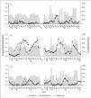 Como se mencionó anteriormente, las fenofases, por lo general se relacionan más con la disponibilidad de agua en el suelo que con la precipitación; en estos bosques inundables dicha disponibilidad depende del nivel del río Atrato. Desafortunadamente, estos registros son escasos y se restringen al primer periodo de seguimiento fenológico (1999-2001). Por lo anterior, se utilizó la precipitación como variable sustituta de la disponibilidad de agua en el suelo, pues su relación con el nivel del río durante el periodo citado fue significativa (r=0.76; p=0.0000). Un análisis similar, pero con datos climáticos históricos, correspondientes a un lapso de 15 años (1985-2000), arrojó una correlación menor, pero aun significativa (r=0.64, p<0.000), lo cual confirma que la precipitación local ejerce una influencia evidente sobre el nivel del río en este sitio.