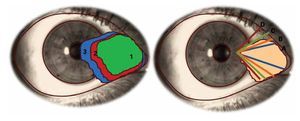 Se clasificaron los ojos con pterigiones de acuerdo a su grado de invasión, desde el limbo hasta el centro de la córnea en tres grados (Figura 1):