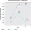 Estimated marginal means for the group without laser application («No» group) and the group that received treatment with laser («Yes» group) at two time intervals.