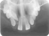 The patient was subjected to initial X-ray assessment, panoramic X-rays were taken as well as maxillary full occlusal computerized X-rays (Figures 2-4). Radiographic assessment revealed multiple tooth ageneses. Additionally to teeth observed at the intra-oral examination, erupting upper canines (right and left) were present, as well as a tooth bud at the level of the first upper left premolar; erupting lower canines were equally present, both with possibility of crown shaped alterations; generalized bone resorption was observed in both arches.