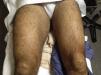 Inicialmente se realizó vendaje compresivo (para limitar la expansión del hematoma), elevación de la extremidad e infusión endovenosa de metilprednisolona 60mg junto con analgésicos (paracetamol y metamizol). Se realizó control clínico a las 2h, evidenciándose disminución del edema y el dolor, permitiendo una flexión de rodilla hasta 70°. Puesto que la clínica mejoró sustancialmente con el tratamiento sintomático inicial se orientó el caso como síndrome compartimental leve. Se mantuvo el paciente en observación el control del tropismo durante 6h, con elevación de la extremidad y curas con agua de Burow, siendo dado de alta con franca mejoría de la clínica.