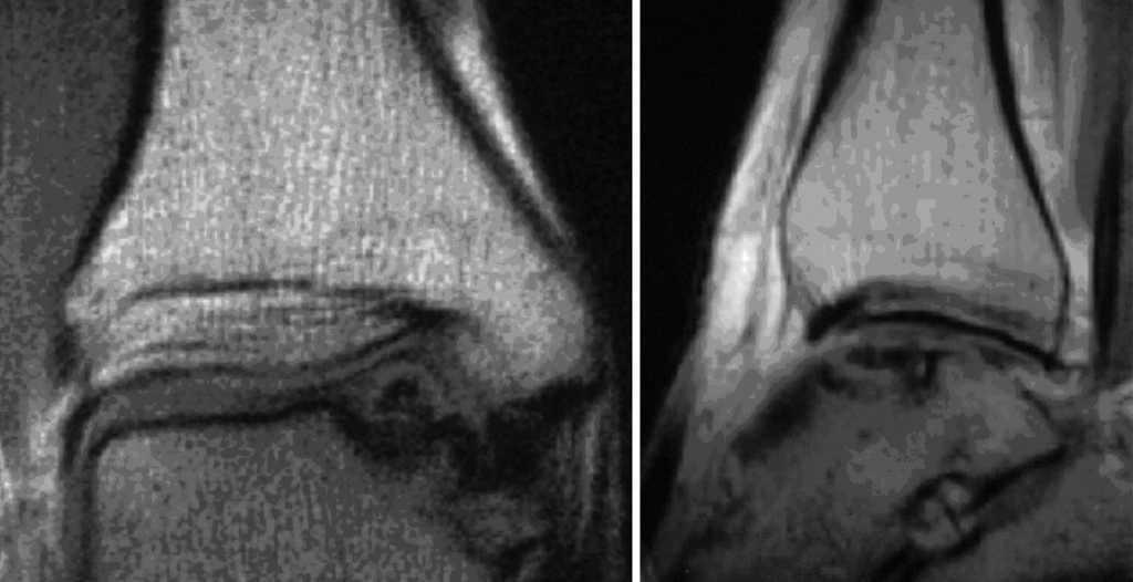 Figura 1. RMN de tobillo en la que se observa una lesión osteocondral de la porción posterior del astrágalo.
