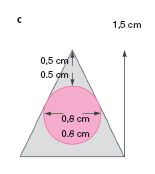 c) La anchura del bloque de hueso debe ser de 1,5 cm y su altura aproximada de 4,5 cm. Así se puede alcanzar completamente aquella lesión que tenga 8 mm de diámetro y que quede a 1 cm de profundidad.