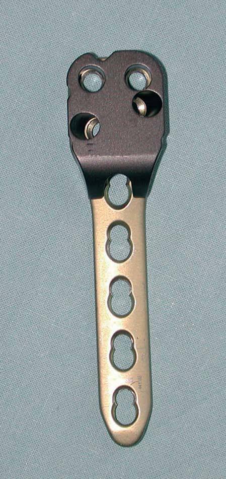 - Incorrecta posición del tornillo de bloqueo: mal blo-queo del tornillo a la placa provocando distracción, soldadura en frío, o aflojamiento del tornillo: ajuste del protocolo de tratamiento postoperatorio.