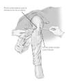 Figura 5a. Introducción del artroscopio a través de un portal anterolateral; el portal anteromedial se utiliza para la instrumentación. La cánula de irrigación se introduce por el portal medial suprapatelar.