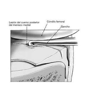 * No reconocer adecuadamente la forma y el lugar de la lesión debido a una mala visualización de la articulación: errores de reconstrucción. Se necesitará cirugía de revisión o a la larga meniscectomía. La visualización del menisco lateral puede mejorarse con un portal complementario o realizando maniobras de varo forzado con la rodilla en flexión y manteniendo la cadera en rotación externa.