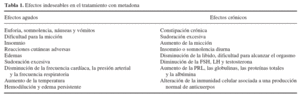 M: Existen efectos agudos que se presentan al iniciar el tratamiento y efectos crónicos. Los más frecuentes son la sudoración, el estreñimiento y el incremento de peso (tabla 1).