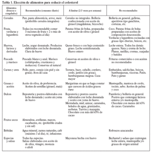 El conocimiento de los efectos saludables de los distintos nutrientes en los factores de riesgo cardiovascular y, sobre todo, las cifras de colesterol, permite entender las recomendaciones dietéticas generales para reducir a la vez el colesterol y el riesgo cardiovascular en general. Estas instrucciones dietéticas configuran una alimentación sana y equilibrada, apta tanto para adultos como para niños o personas de la tercera edad, y permite los menús variados y sabrosos de la dieta mediterránea tradicional. Los principales alimentos se agrupan en 3 categorías según la frecuencia deseable de su consumo (tabla 1):