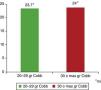ResultadosPara la obtención de la muestra fue preciso analizar un total de 170 historias clínicas con el diagnóstico de escoliosis. De todas ellas fueron excluidas para el estudio 94 (55,3%). El motivo fue porque en 58 (34,1%) no constaba el grado de escoliosis y en 36 (21,2%) sí constaba, pero la escoliosis era inferior a 20° Cobb. Por tanto, se incluyeron 76 pacientes que se dividieron tal y como se ha descrito previamente en 2 grupos: a) escoliosis entre 20 y 29° Cobb 44 pacientes; y b) escoliosis con 30 o más grados Cobb 32 pacientes.