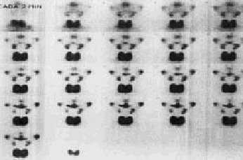 Grado I (normal). Se comprueba rápida captación del trazador por las glándulas salivales en los primeros 10 min, con concentración progresiva y excreción a la ca vidad oral a los 20-30 min. Al final de la prueba la actividad en la boca es mayor que en las glándulas salivales (fig. 4).