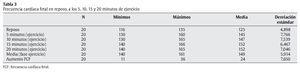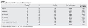 La tabla 3 muestra claramente los aumentos de la FCF en cada fase del ejercicio partiendo de la situación de reposo (media = 125 lat/min), y especialmente la media de estos aumentos (24 lat/min), los cuales se encuentran entre 11 y 36 lat/min.