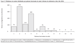 Figura 5. Problemas sin resolver distribuidos por patrones funcionales de salud. Informes de enfermería al alta. Año 2004.