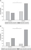 Se analizó la asociación entre los anticuerpos anti-ADN y compromiso renal, en 2 momentos: 1) presencia de ambas en algún momento de la enfermedad; y 2) ambas en un mismo momento. Los resultados se muestran en la figura 5 y en la tabla 2.